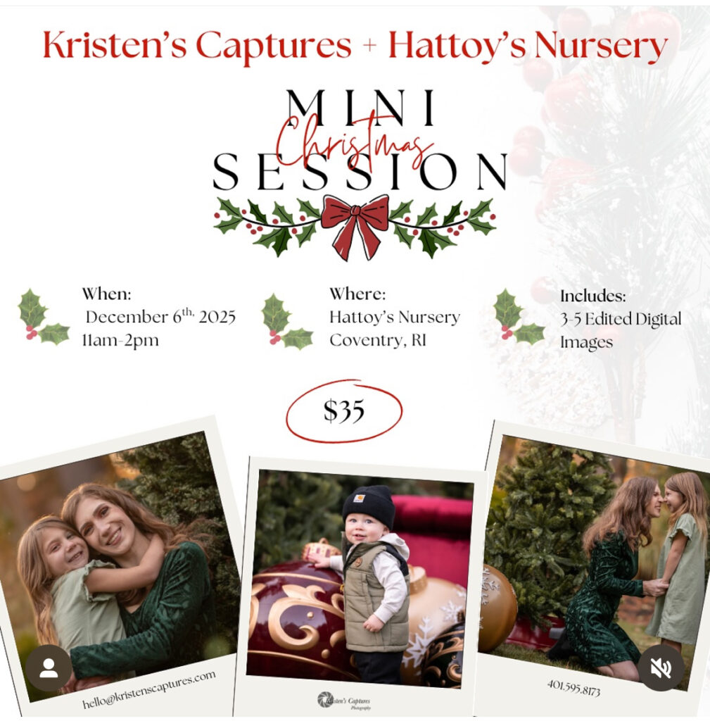 Stop in for Holiday pictures with mini-photo sessions being offered at Hattoy’s Nursery. No appointment needed.